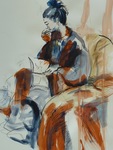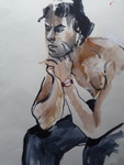 Mensen, mannen en vrouwen die in mijn atelier poseren, waar ik een snelle schets maak en soms verwerk in een schilderij